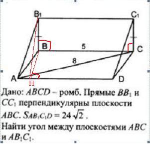 АВСD -ромб, АВ=5 , АС=8 , ВВ₁⊥(АВС), СС₁⊥(АВС), ВВ₁=СС₁ , S(АВ₁С₁D)=24√2 .