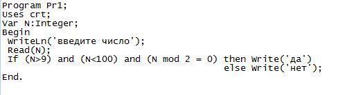 Определить, является ли целое число N четным двузначным числом. Помогите написать программу в Кумир