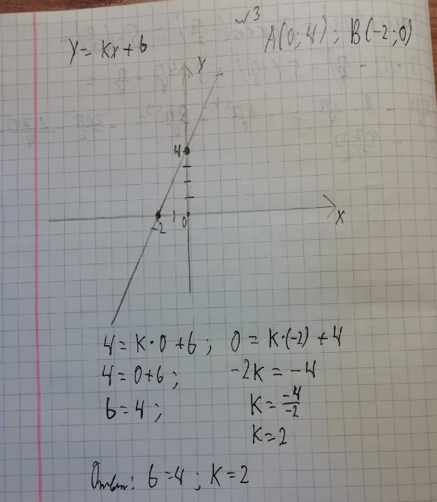 в точках А (0; 4) и В (-2; 0). Найдите значения k и b, постройте график линейной функции