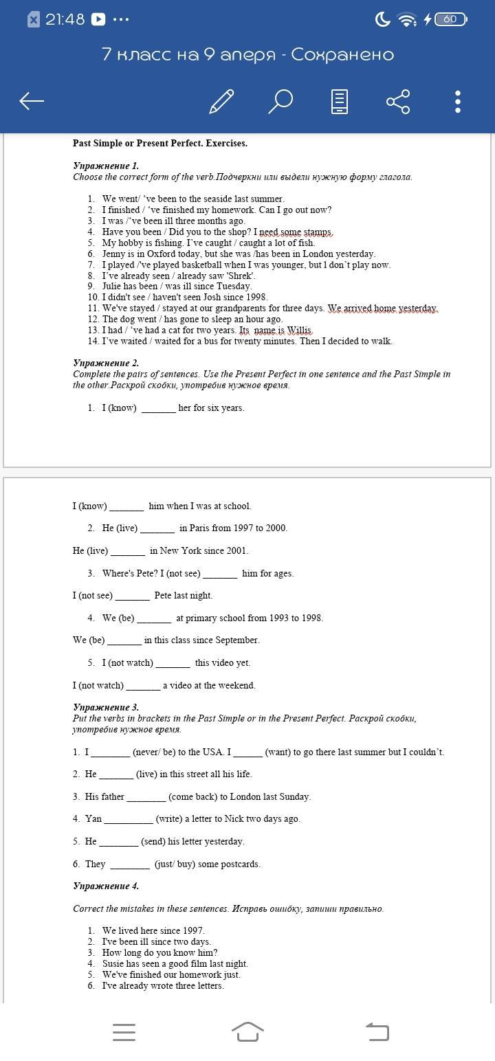 1) went, 2) 've finished, 3) was, 4) Have you been 5) 've caught, 6) was, 7) played, 8)'ve already saw, 9) has been, 10) haven't seen, 11) 've stayed, 12) went, 13) 've had, 14) 've waited