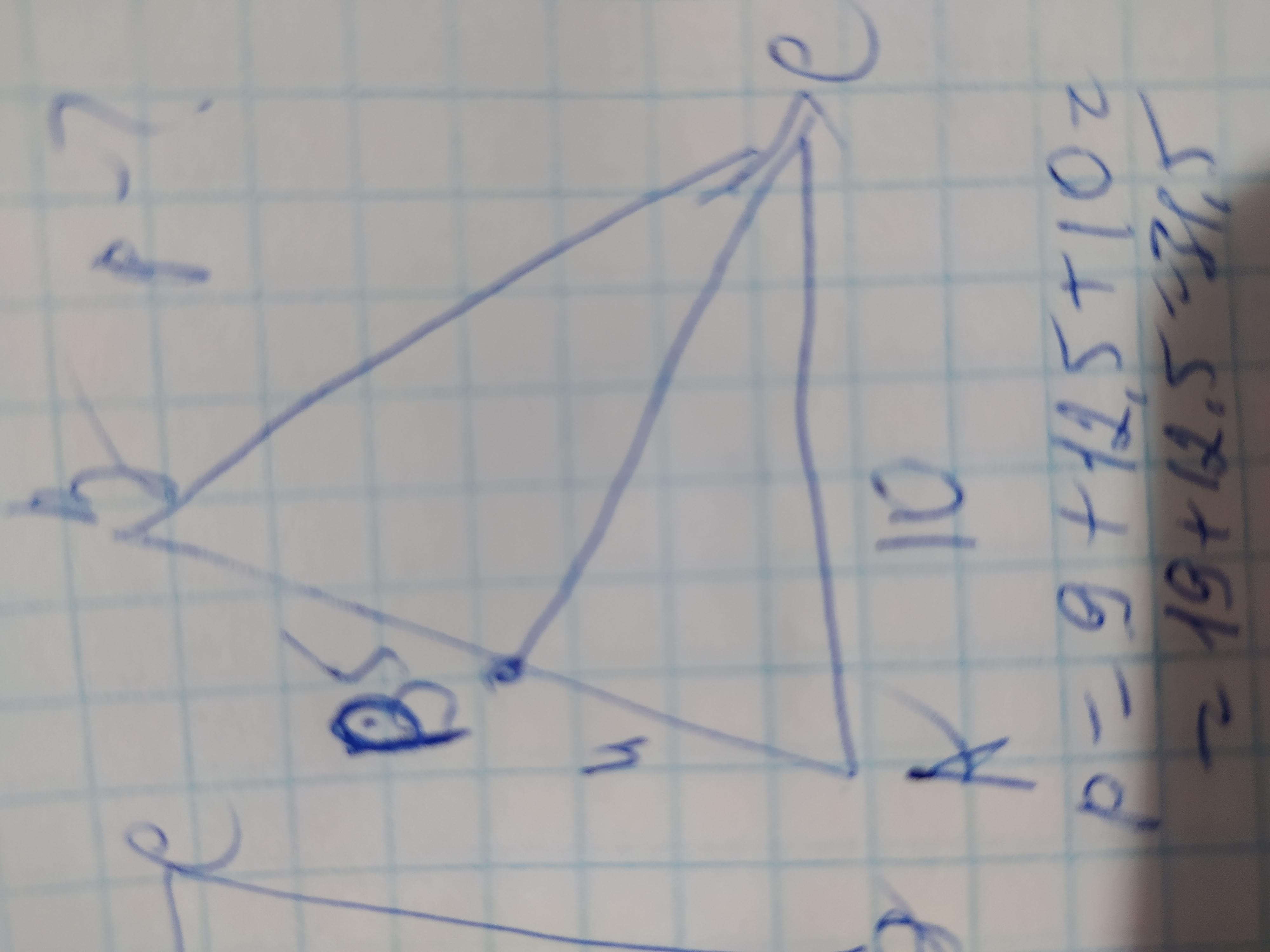 AP = 4 см, РВ=5 см. Знайдіть периметр трикутника, якщо АС=10 см.