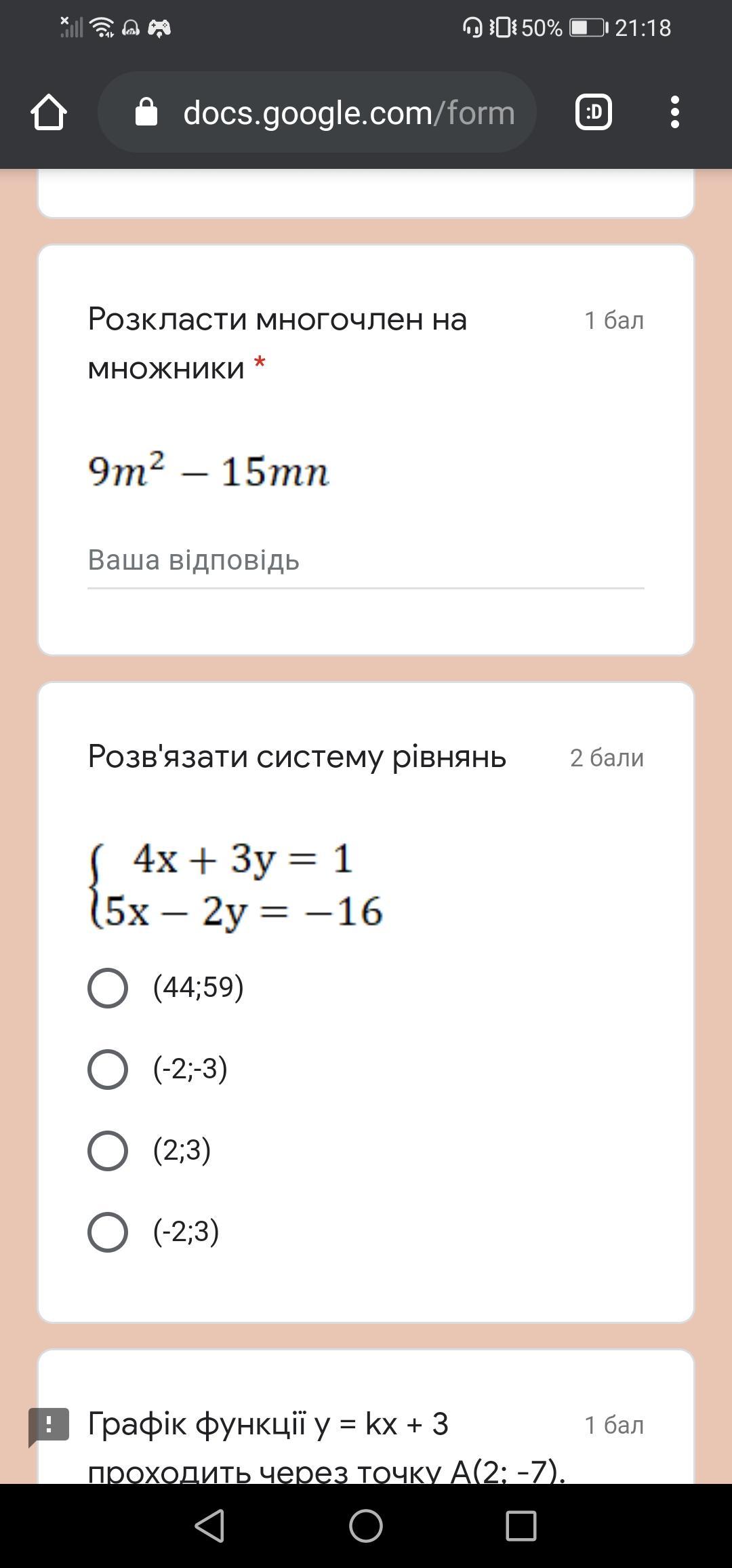 Відповідь: (-2; 3).