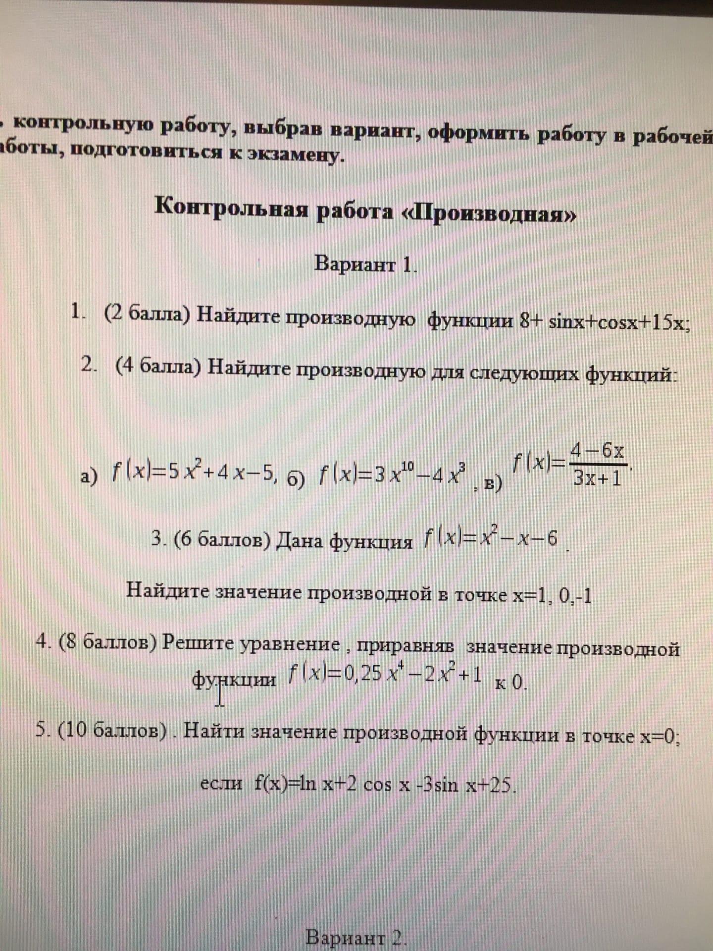 1. Найдите производную функции 8+ sinx+cosx+15x;