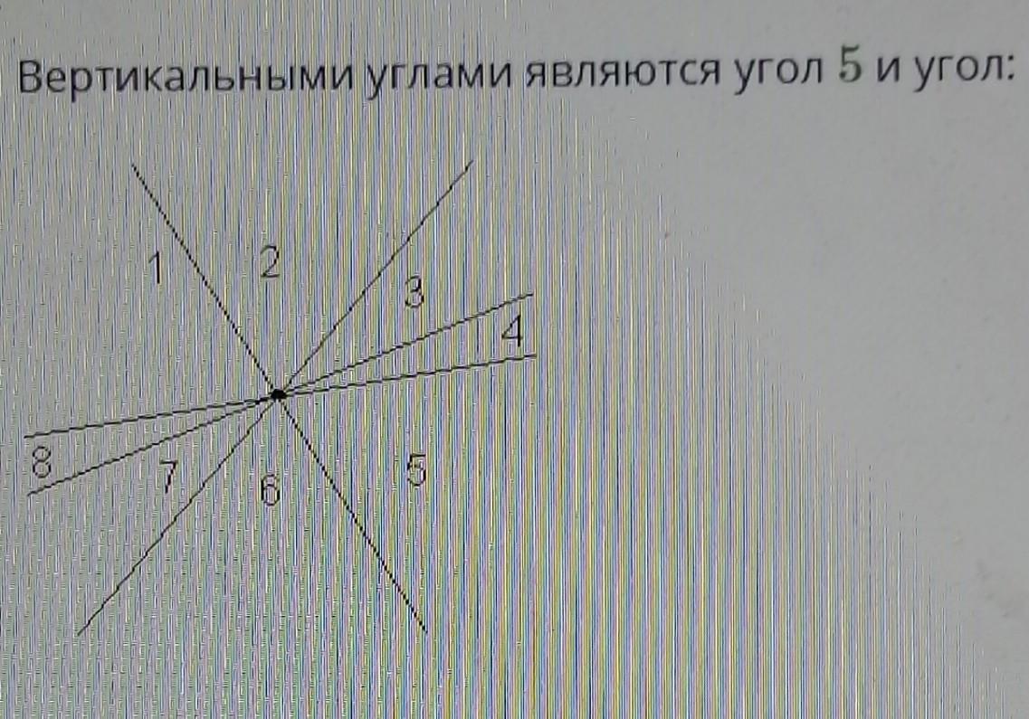 Ветикальными являются угол 5 и 1, 2 и 6, 4 и 8, 3 и 7