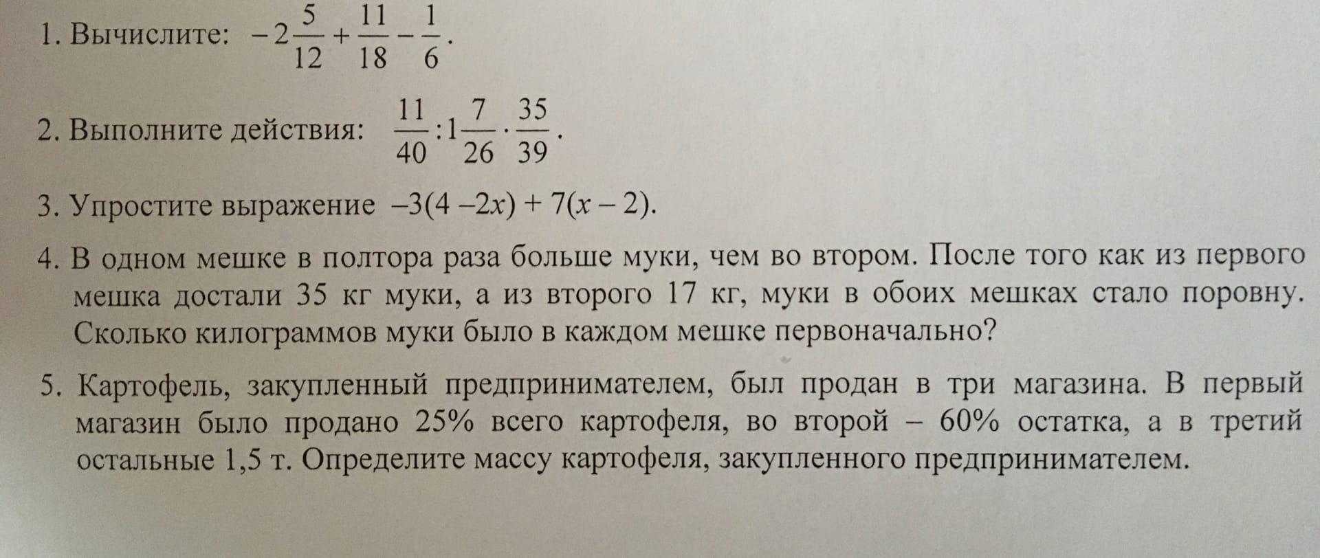 1) 11/18-1/6-2(5/12)=-71/36=-1(35/36);