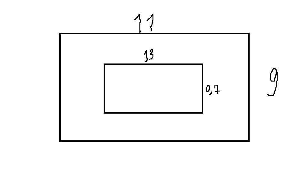 Кухня имеет форму прямоугольника, стороны которого равны 11 ми9 м. На кухне имеется кухонный остров в