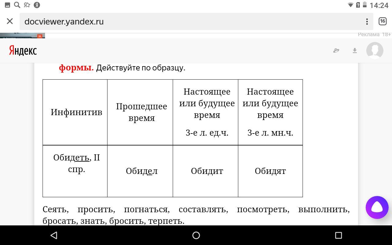 Выполнить -2 спр,выполнил,буду выполнять,выполняли.