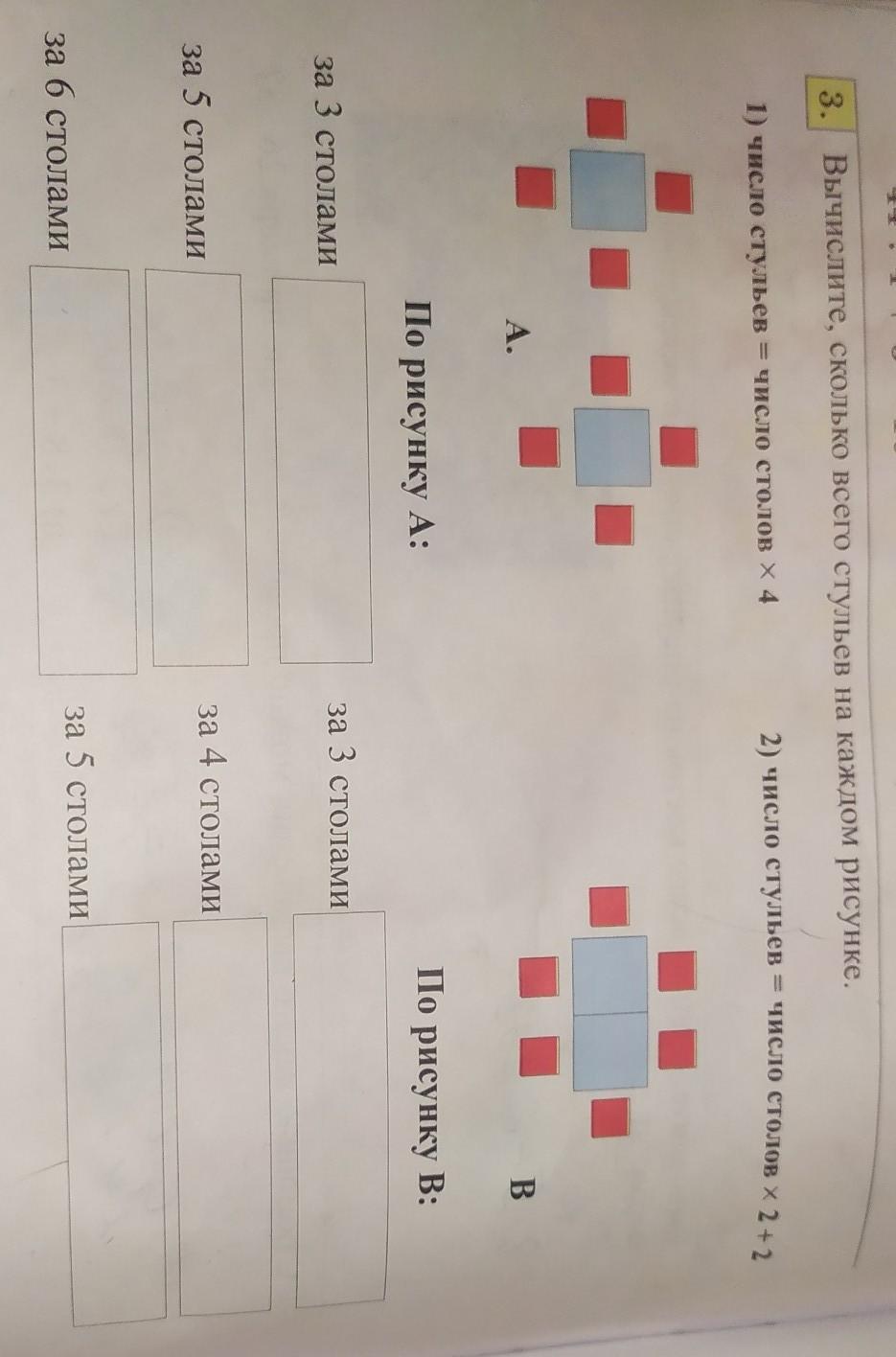 По рисунку А: число стульев = число столов*4