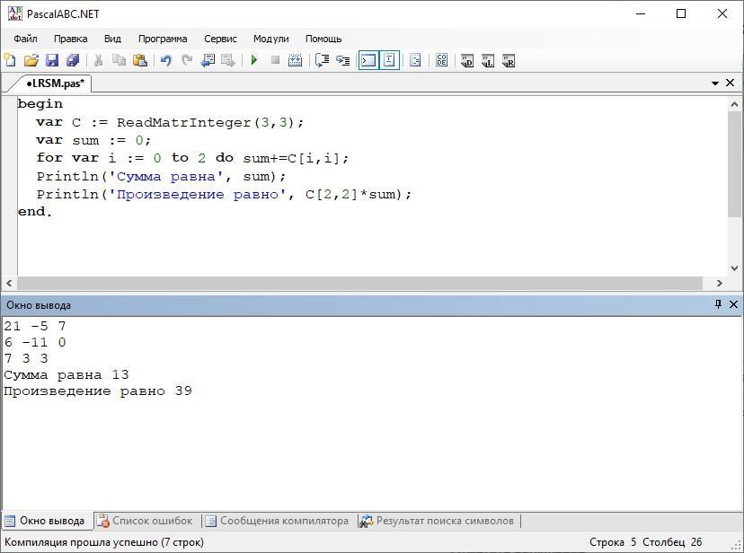 Повторите запуск программы, сформировав элементы матрицы с помощью