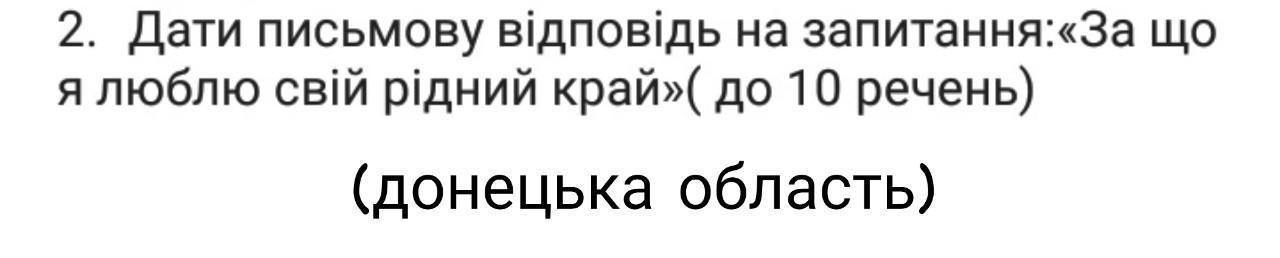 Я народився та живу в Україні, це моя Батьківщина, мій улюблений куточок Землі. Я дуже люблю мальовничу українську природу. Безкрає синє небо, яскраве сонечко, густі трави та квіти, міцні стрункі дерева. В усі пори року вони для мене найпрекрасніші в світі. Хоч, я впевнений, на Землі є багато красивих місць, не схожих на мою країну, і для тих, хто там народився, вони – найгарніші. І я б також хотів подорожувати та побачити всі дива світу на власні очі. Тут, в моєму рідному краю, живуть мої найближчі люди – батьки та друзі, знайомі та сусіди. Завдяки ним я відчуваю себе частиною життя, почуваю себе як удома – потрібним та коханим. Звичайно, інколи між нами трапляються випадки непорозуміння, та це не псує наших відносин. Люди, що живуть поруч зі мною, розділяють ті ж радощі, турботи та сподівання, незважаючи на те, хто вони за національністю та якою мовою розмовляють. Бо рідний край – це не місце на карті, не держава навіть, це кохання в серці. Мій рідний край – це мова, пісні, книжки. Це знайомі з дитинства казкові герої. Це найперші спогади про власне життя. На мою думку, втратити все це – величезне горе. Згадуючи про людей, яким доводилося залишати Батьківщину та жити на чужині, я можу уявити, як важко їм було. А ще гірше – бачити свій рідний край у занепаді, зруйнованим війною…