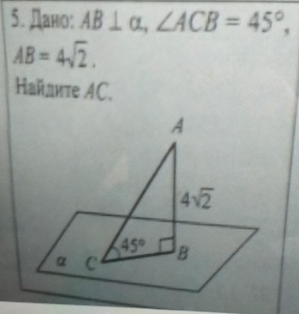 ΔACB - прямоугольный. Угол A = 180 - 90 - 45 = 45. Значит, ΔACB - равнобедренный. Поэтому CB = AB = 4√2. Найдем AC по теореме Пифагора:
