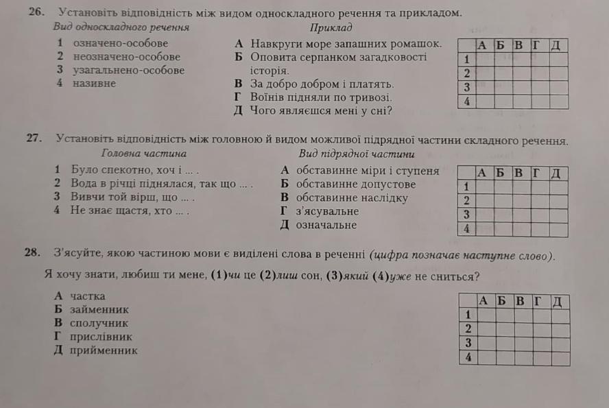 26. 1)д 2)г 3)в 4)б 27. 1)б 2)в 3)д 4)г 28.1)в 2)а 3)б 4)г