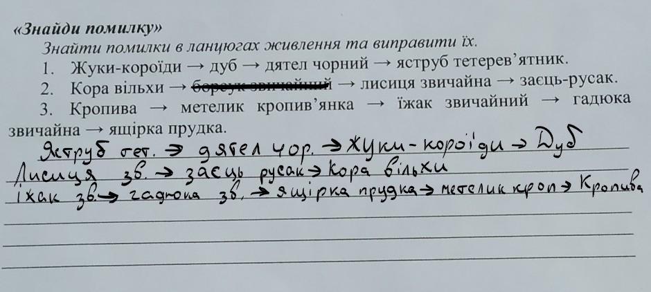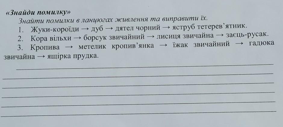 2. Кора вільхи → заєць-русак → лисиця звичайна → борсук звичайний.