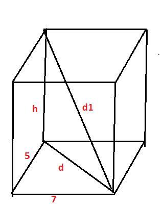 Тогда эта диагональ d, диагональ d₁ -параллелепипеда и боковое ребро, которое является и высотой h составляют прямоугольный треугольник, гипотенуза которого d₁