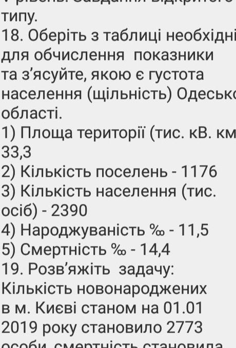 оберіть з таблиці необхідні для обчислення показники та З'ясуйте якою є густина населення щільність Одеської області