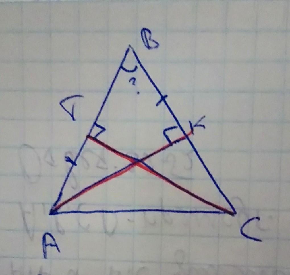 В треугольнике АВС высоты АК и СТ равны, АТ = ВК. Найдите угол В