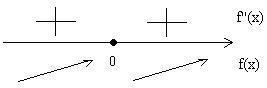 Решение: Найдем первую производную заданной функции: y′=(12x³+4)′=36x². Найдем критические точки: y′(x)=0; 36x²=0; ⇒x=0. Найдем вторую производную заданной функции: y″=(36x²)′=72x. Исследуем знак f″(x) в критической точке: y″(0)=72⋅0=0 Так как вторая производная заданной функции обращается в ноль в критической точке, то мы не можем определить характер критической точки с ее помощью. Для определения характера критической точки воспользуемся первой производной. Исследуем знак f′(x) с помощью числовой прямой: Рисунок 7. Так как производная заданной функции не меняет знак при переходе через критическую точку, то в данной точке нет ни максимума, ни минимума График заданной функции приведен на рис.8.