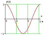 Пример 2.Исследовать заданную функцию на минимум и максимум: y=cosx. Решение: Поскольку заданная функция является периодической с периодом 2π, то можно ограничиться исследованием функции на отрезке [0;2π]. Найдем первую производную заданной функции: y′=(cosx)′=−sinx. Найдем критические точки: y′(x)=0;−sinx=0 x1=0,x2=π,x3=2π. Найдём вторую производную заданной функции: y″=(−sinx)′=−cosx. Исследуем знак f″(x) в критических точках: y''(0)=-cos 0=-1; y''(2π )=-1 Следовательно, в точках x1=0,x3=2π имеем максимум данной функции, а в точке x2=π - минимум данной функции. Вычислим значения заданной функции f(x) при каждом критическом значении переменной: y(0)=cos0=1;y(π)=cosπ=−1;y(2π)=cos2π=1 График заданной функции приведен на рис. Рисунок 9.