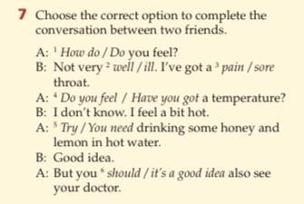 Ответ:1-how do 2-well 3-sore 4-have you got 5-try 6-should