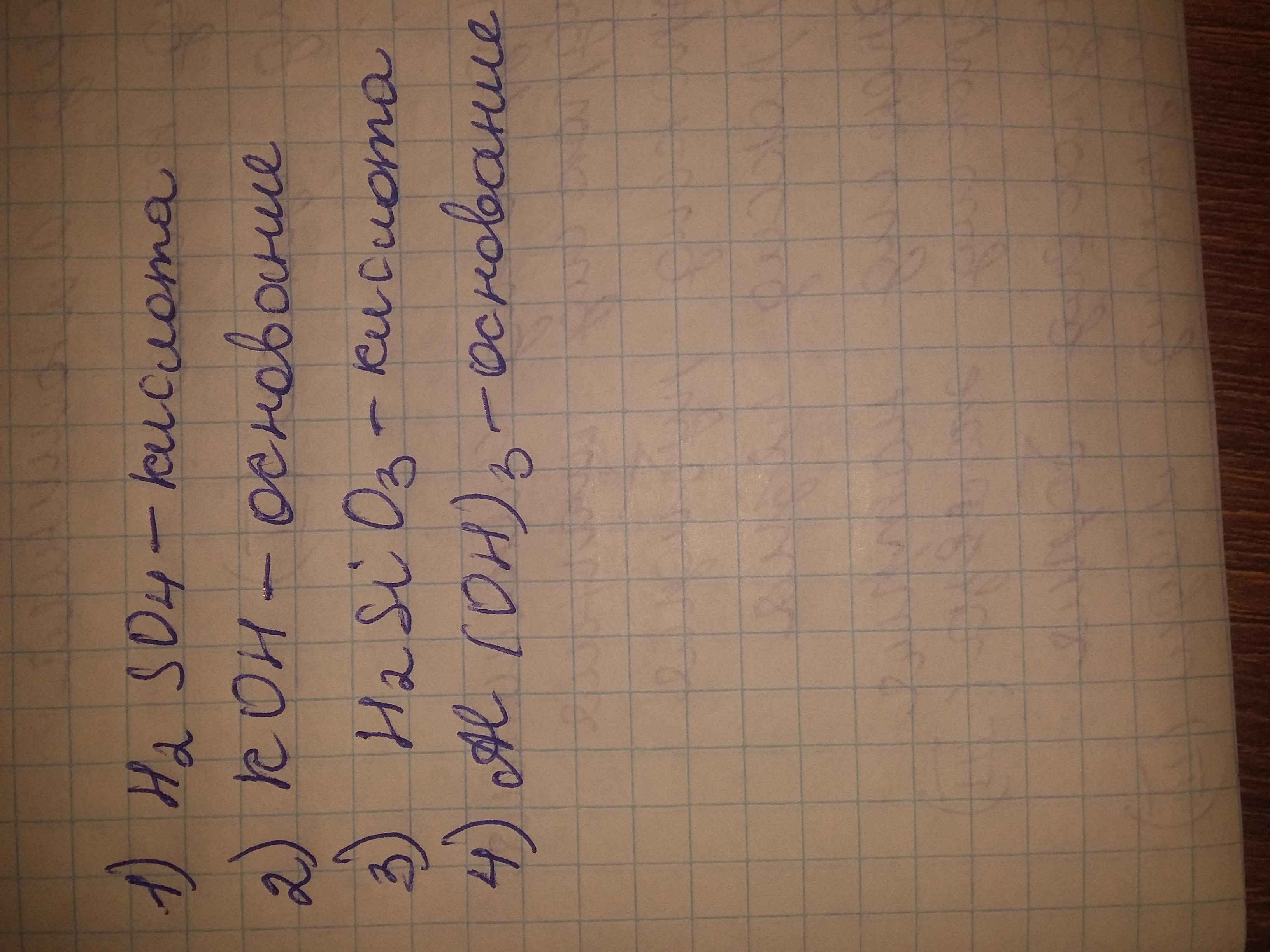 Знайдіть відповідність: Формула сполуки Тип сполуки 1)H²SO⁴ а)основа 2)K O H б)кислота 3)H²SI O³