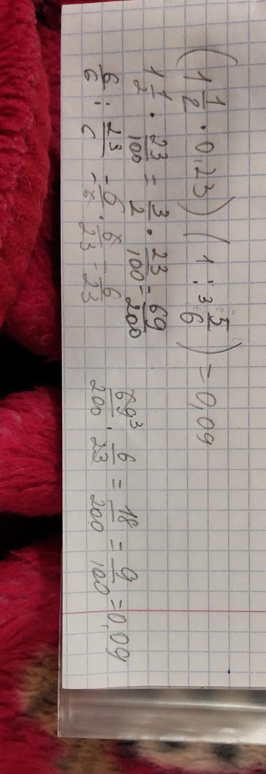 Добуток чисел -1ціла 1/2 і 0,23 помножити на частку чисел 1 і -3цілих 5/6
