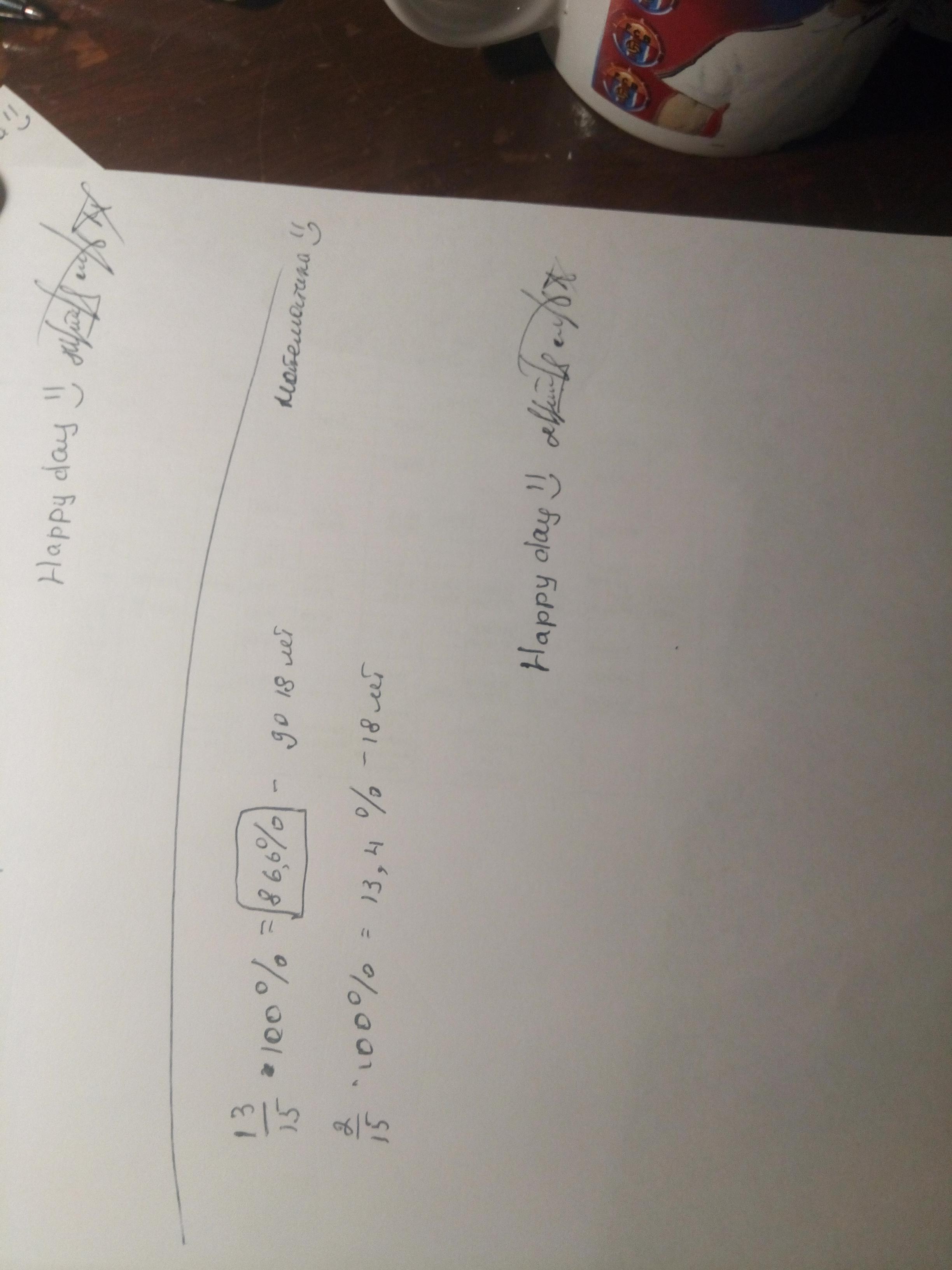 людей до 18 лет - 13 человек, а 18летних - 2 человека. сколько в процентах будет людей которым нет 18 лет?