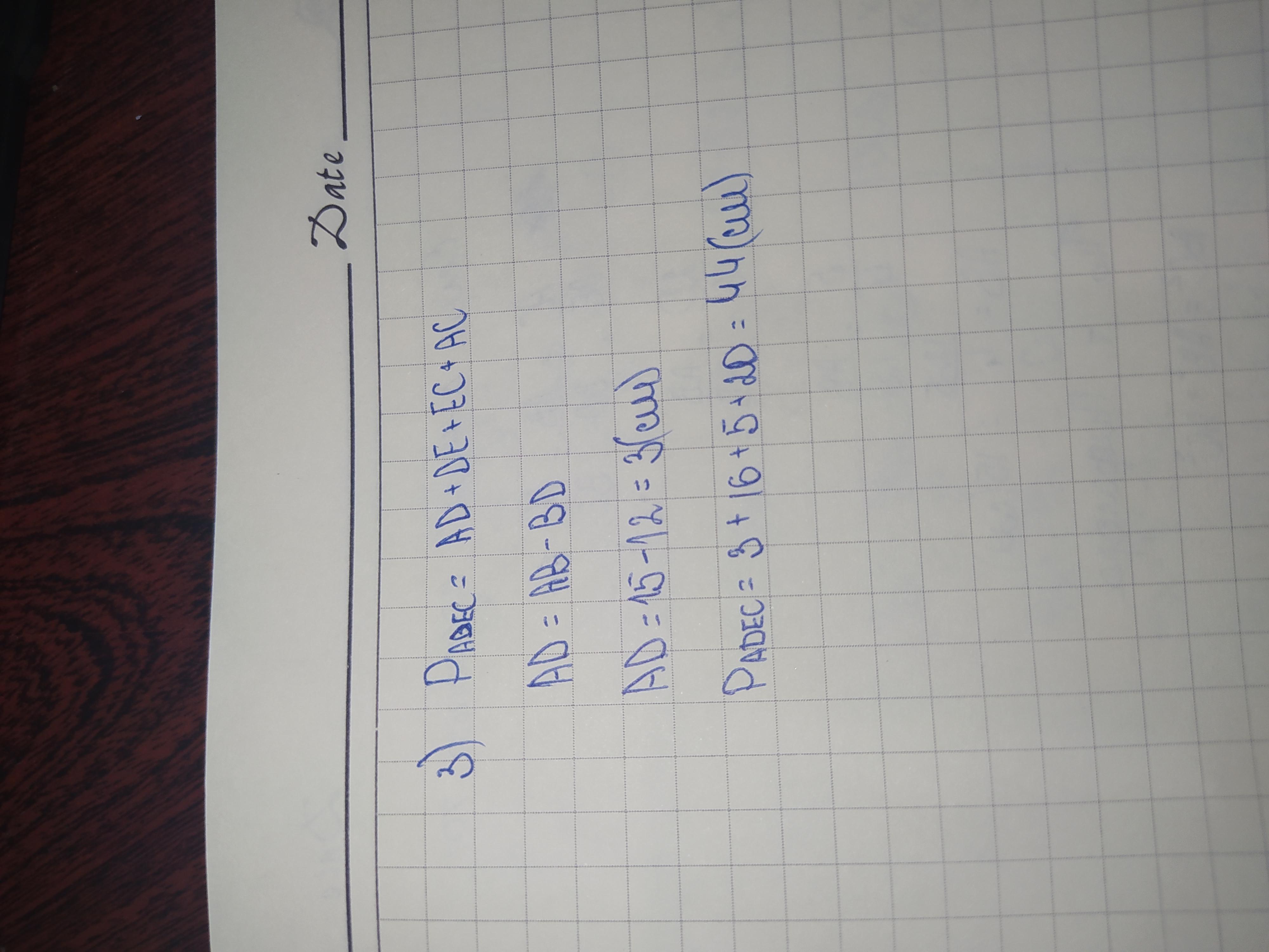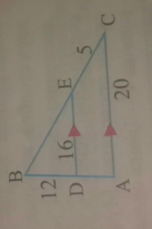 3) AD = AB - 12 = 3; DE=16; EC = 5; AC = 20