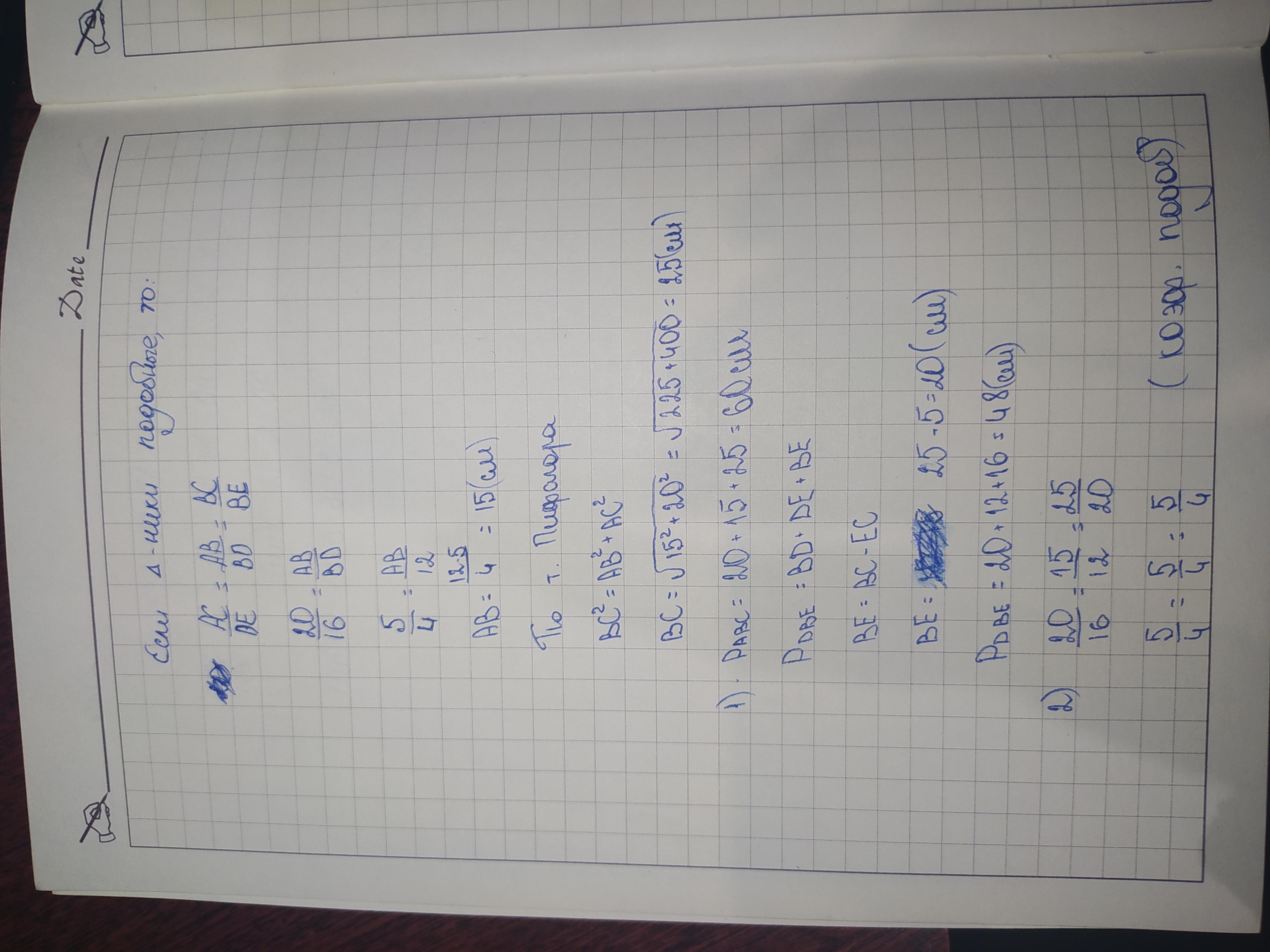 2)коэффициент подобия DE / FC = 16 /20 = 4/5