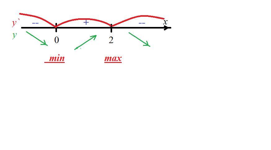 Таким образом, Х = 0 - это точка минимума, а точка при Х = 2 - точка максимума.