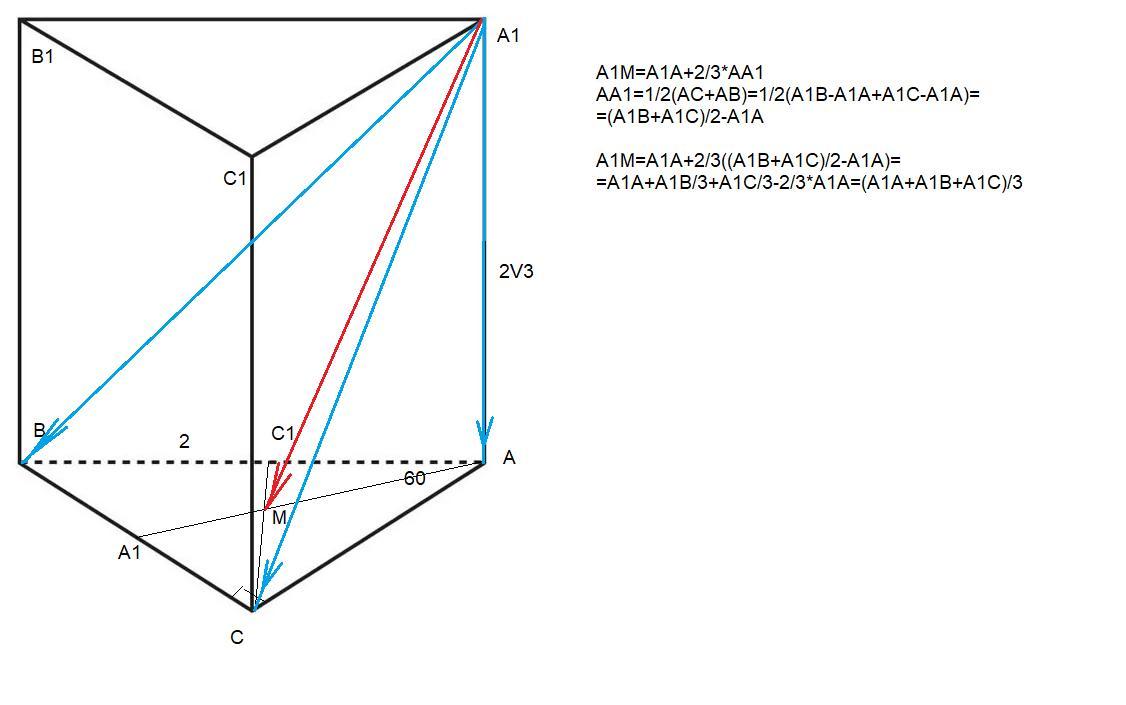 5) Разложите вектор (A1M) ⃗ по векторам (А1А) ⃗, А1В и (А1С) ⃗, если М — точка пересечения медиан треугольника ABC.