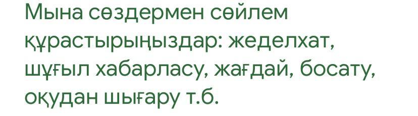 пожалуйста Мына сөздермен сөйлем құрастырыңыздар: жеделхат, шұғыл хабарласу, жағдай, босату, оқудан шығару т.б.