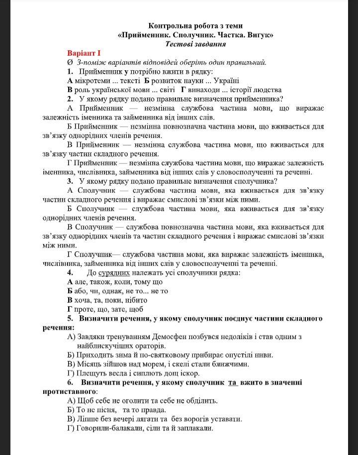 Контрольна робота з теми