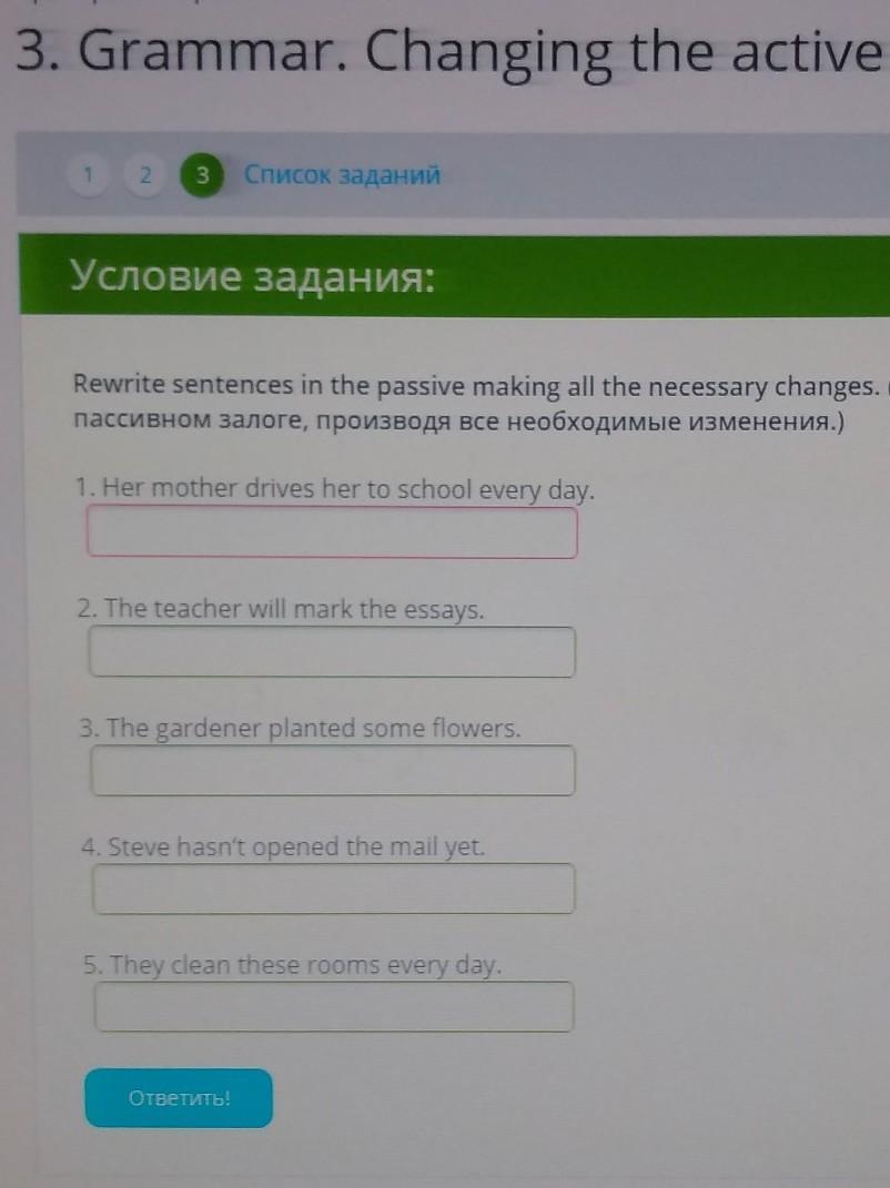 Перепиши предложения в пассивном залоге, производя все необходимые изменения.