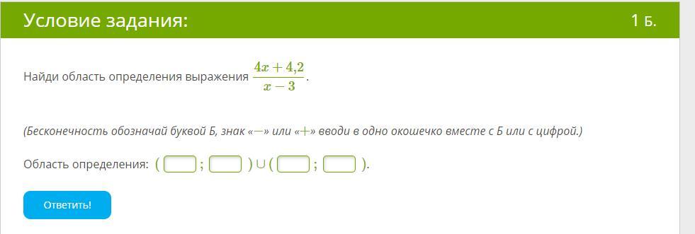 (Бесконечность обозначай буквой Б, знак «−» или «+» вводи в одно окошечко вместе с Б или с цифрой.)