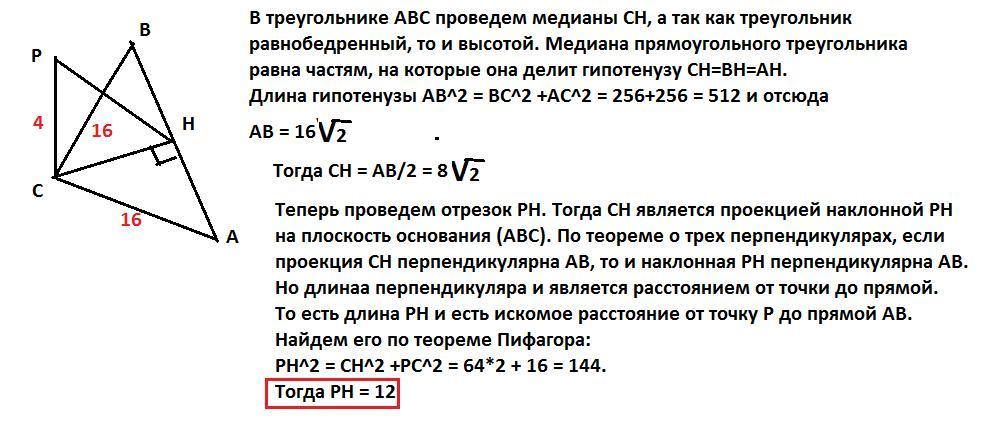 которого равны по 16 см, проведена прямая СР, перпендикулярная его