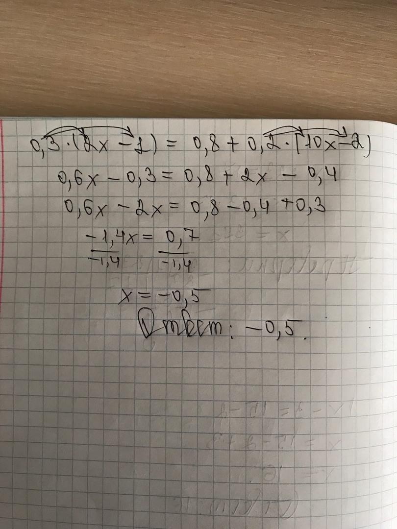 0,3(2х – 1) = 0,8 +0,2(10х - 2)