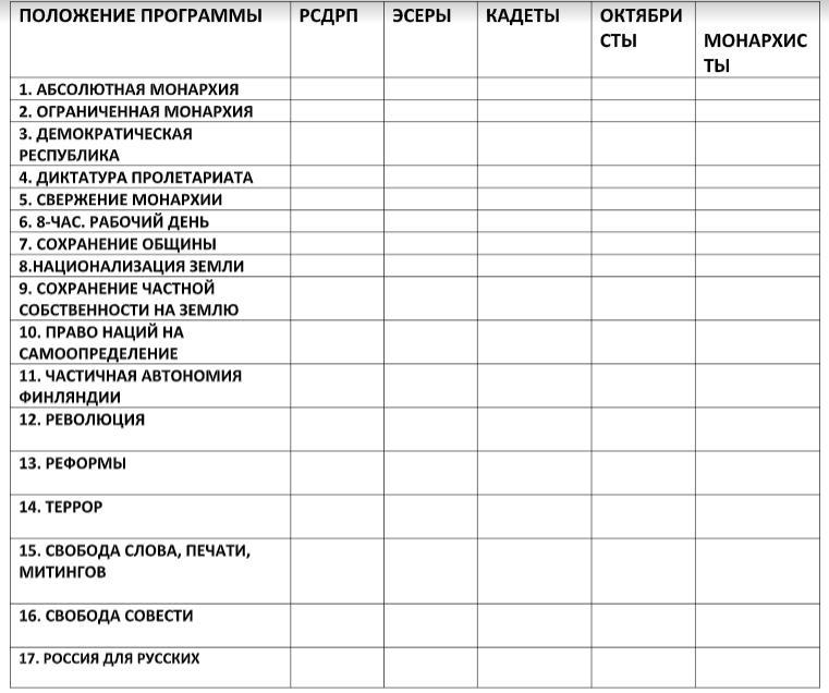 Таблицу прикрепила. Что касается реформ, свободы совести и террора я не знаю.