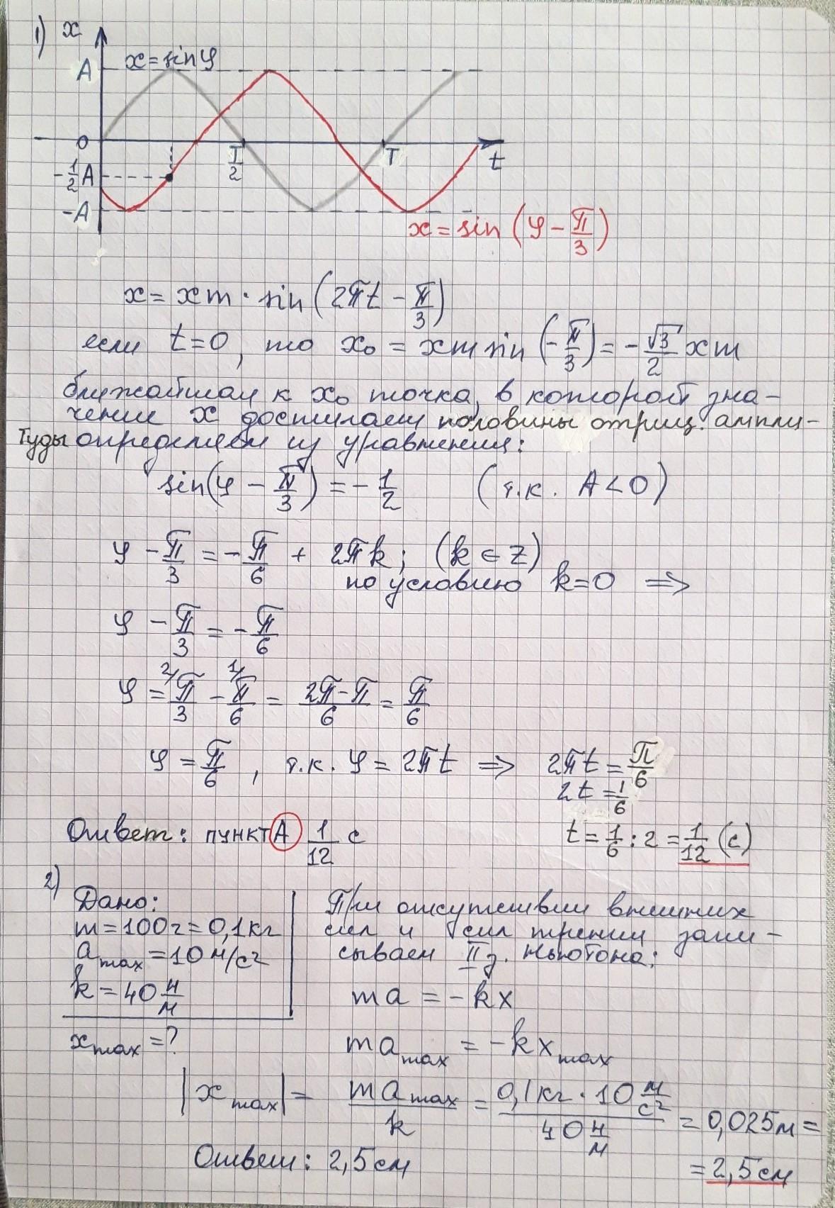 Коливання частинки відбуваються за законом х = хm ∙ sin(2πt – π/3). Через який мінімальний проміжок часу модуль зміщення дорівнює половині амплітуди?