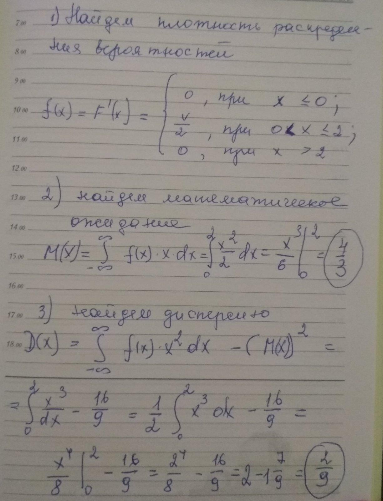 Случайная величина Х задана функцией распределения Найти плотность распределения вероятностей, математическое ожидание и дисперсию случайной величины.