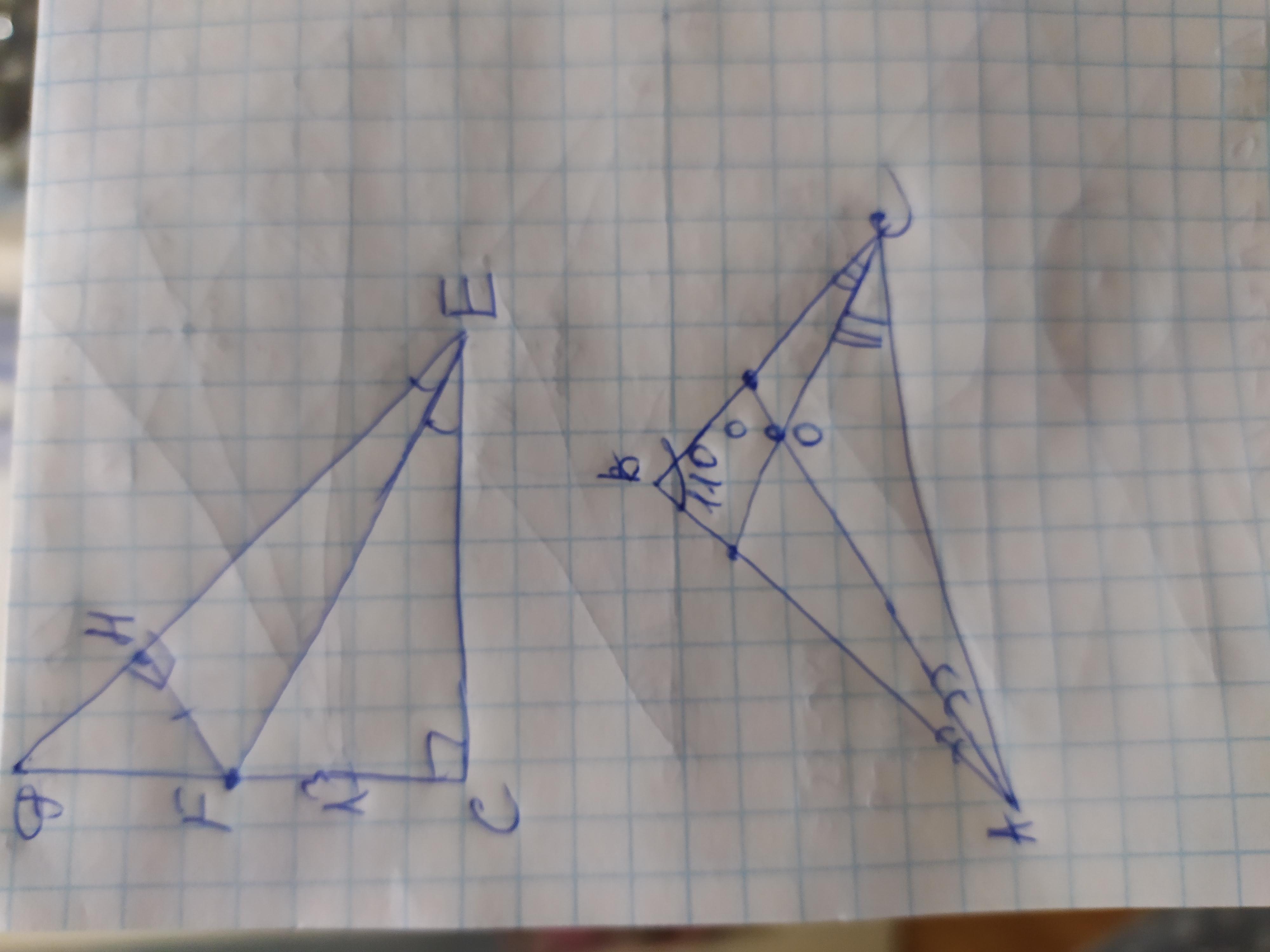 2) В треугольнике АВС = 1100, биссектрисы углов А и С пересекаются в точке О. Найдите угол АОС.