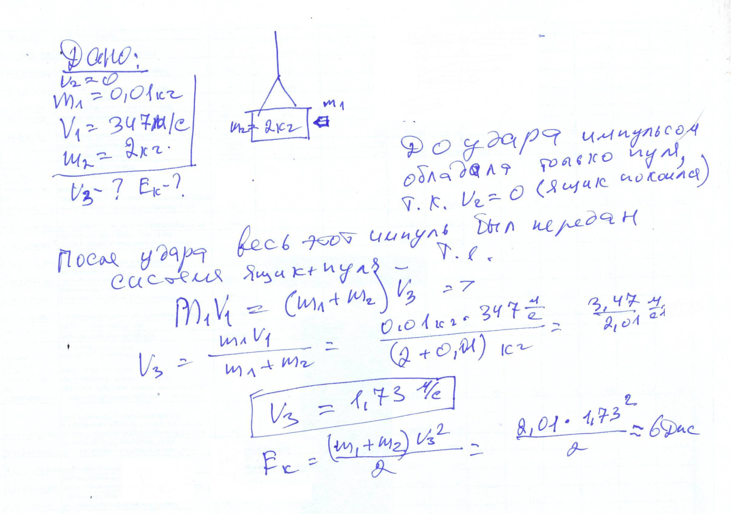 б)какую энергию приобрела система ящик с песком-пуля после взаимодействия пули с ящиком?