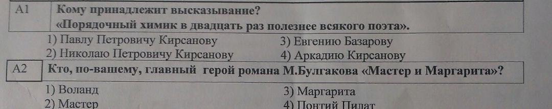 А1) Евгению Базарову. А2)Воланд.