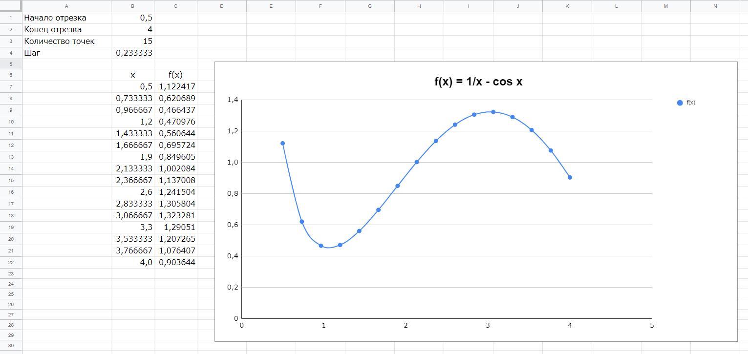 Составил такую таблицу с графиком.