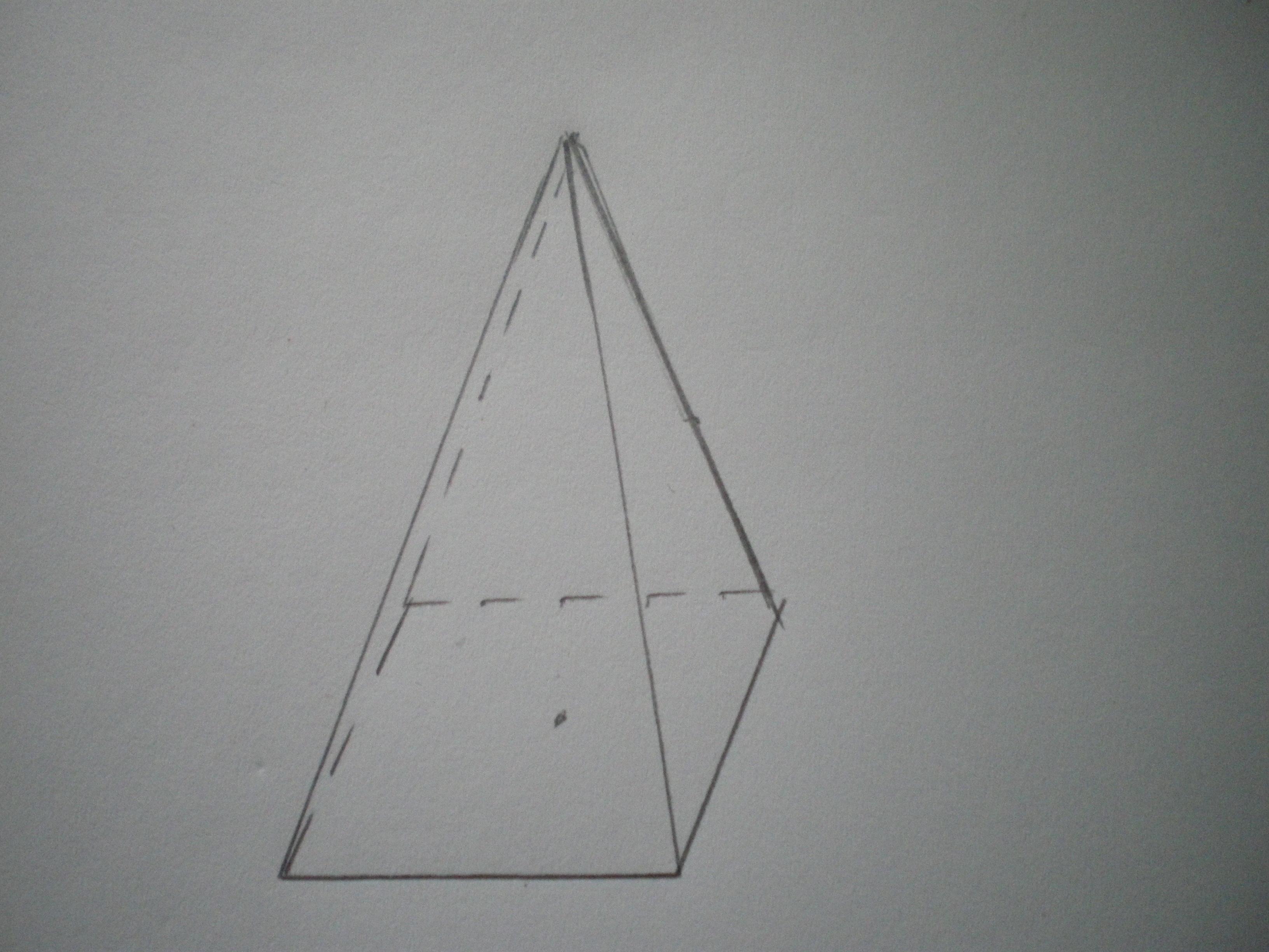 Если пирамида правильная четырехугольная, то в её основании лежит квадрат.