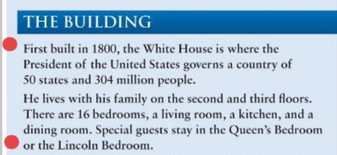 Он и его семья живут на втором и третьем этажах. Здесь 16 спален, гостиная, кухня и обеденный зал. Особые гости размещаются в спальне королевы или спальне Линкольна