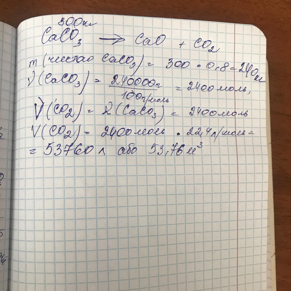 Який об’єм CO2 виділиться при розкладанні вапняку масою 300кг, що