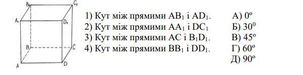 Установити відповідність між кутами ( 1-4) і їх градусними мірами ( А-Д).