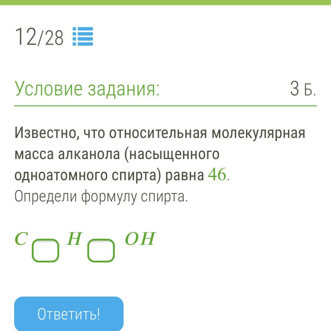 Формула спирта: C₂H₅OH - Этиловый спирт