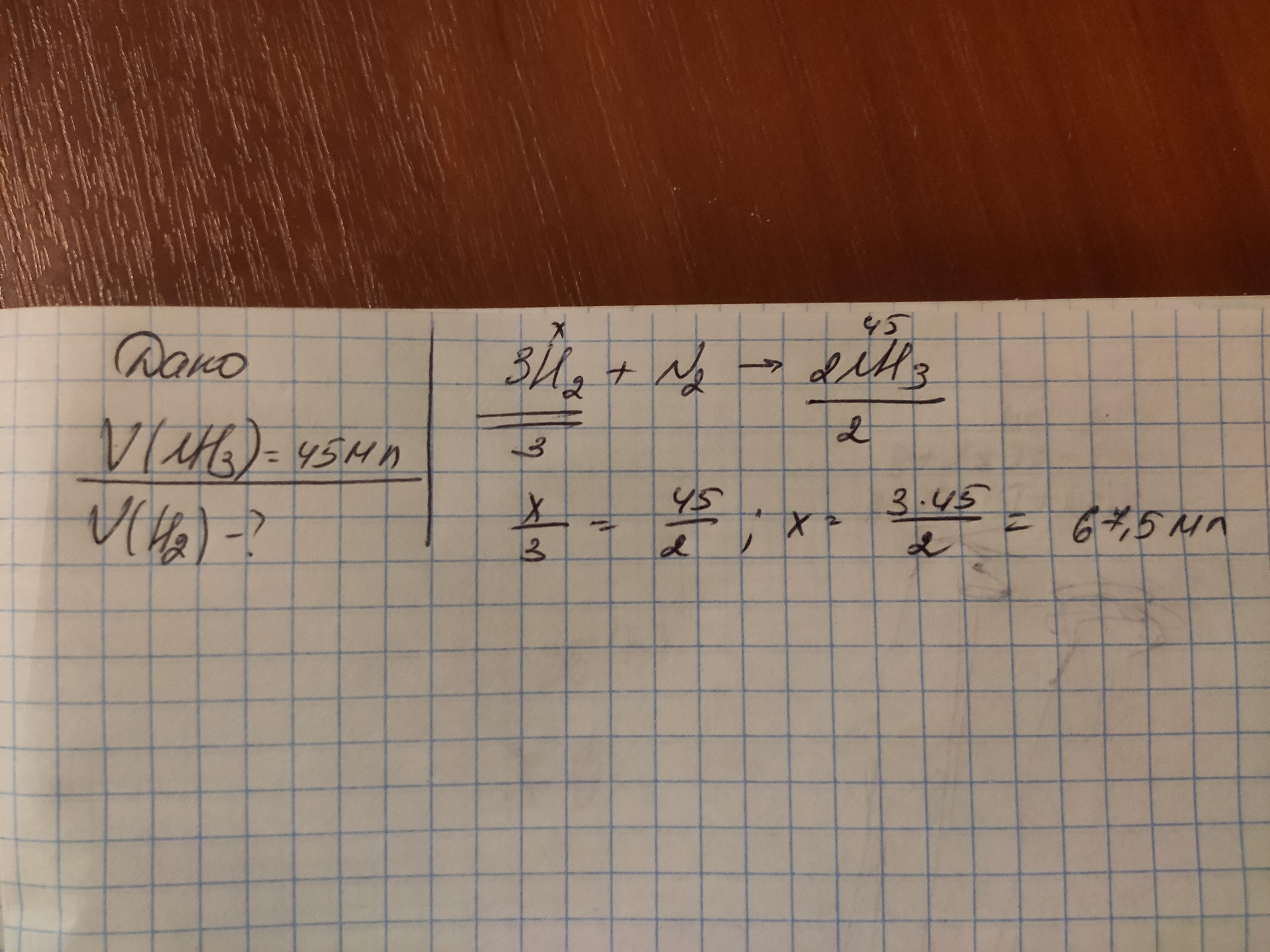 Вычисли, какой объём водорода прореагировал с азотом, если образовалось с 45 мл аммиака.
