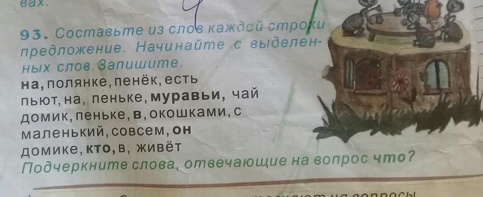 2) Муравьи пьют чай на пеньке. (Подчеркнуть чай)